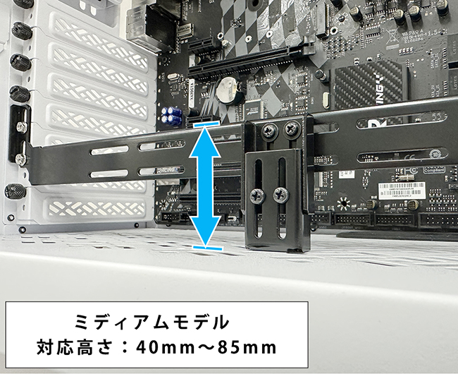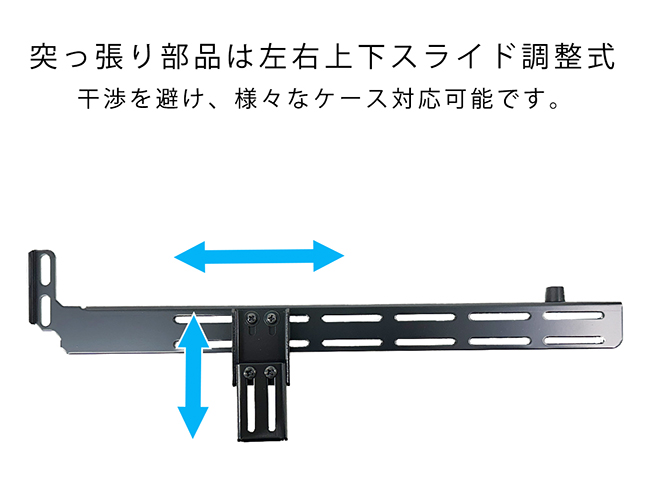 | ■ 突っ張り位置はスライドで調整が可能ですのでケース底面にファンが設置してある場合でも |