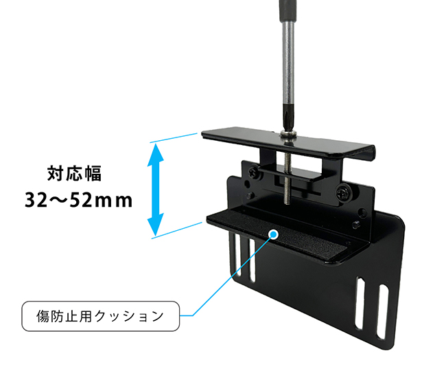 対応幅:約32mm~約52mmまで取付が可能です。※収縮にはドライバーが必要です。