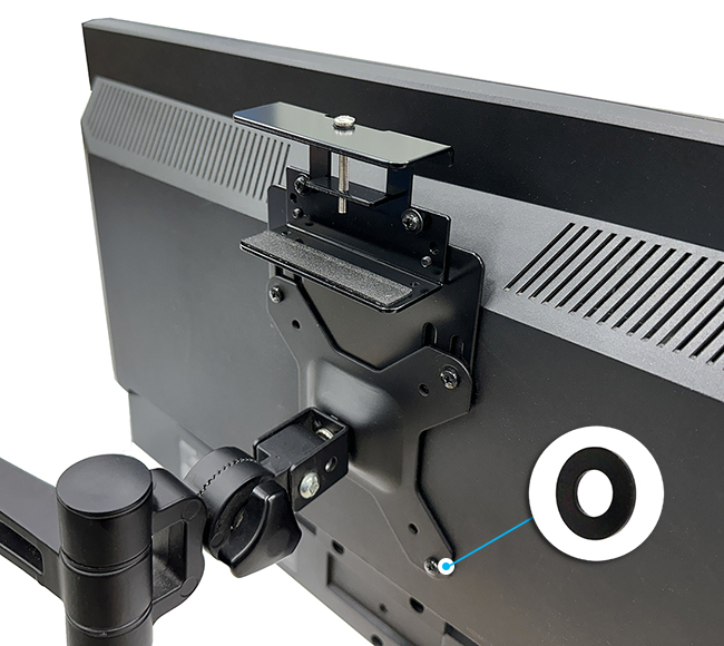 ※モニターアームと併用する際は付属の高さ調整用ワッシャーをアームの間に入れて下さい。